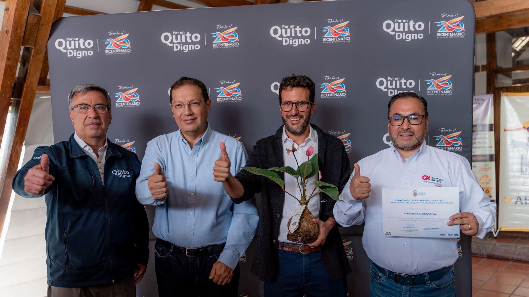 Por su parte, Santiago Guarderas, alcalde del Distrito Metropolitano de Quito expresó: “Quito Adopta es un programa que promueve la participación de diferentes actores sociales para incentivar la conciencia ciudadana en el cuidado, mantenimiento y buen uso del espacio público (...) Es meritorio reconocer el compromiso que ha asumido, con la comunidad y el entorno, la empresa Cervecería Nacional (...) estas acciones demuestran que unidos podemos aportar con el cuidado del medio ambiente y, sobre todo, mejorar la calidad de vida de la población, que finalmente es el objetivo principal que nos impulsa”.