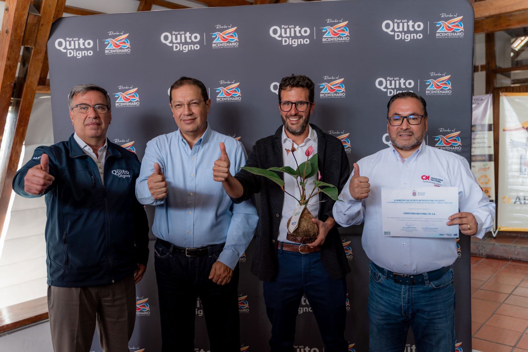 Por su parte, Santiago Guarderas, alcalde del Distrito Metropolitano de Quito expresó: “Quito Adopta es un programa que promueve la participación de diferentes actores sociales para incentivar la conciencia ciudadana en el cuidado, mantenimiento y buen uso del espacio público (...) Es meritorio reconocer el compromiso que ha asumido, con la comunidad y el entorno, la empresa Cervecería Nacional (...) estas acciones demuestran que unidos podemos aportar con el cuidado del medio ambiente y, sobre todo, mejorar la calidad de vida de la población, que finalmente es el objetivo principal que nos impulsa”.