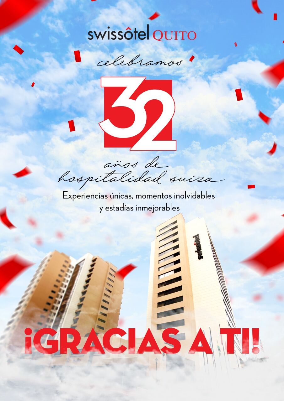 Un 7 de septiembre de 1990, abrió sus puertas Swissôtel Quito. Han transcurrido 32 años de Hospitalidad Suiza en la ciudad de Quito donde ha creado experiencias significativas, con dedicación, pasión por la perfección, y empatía con sus clientes, huéspedes y colaboradores, para llegar así a vivir la experiencia Swiss bajo el lema “Live it Well”.