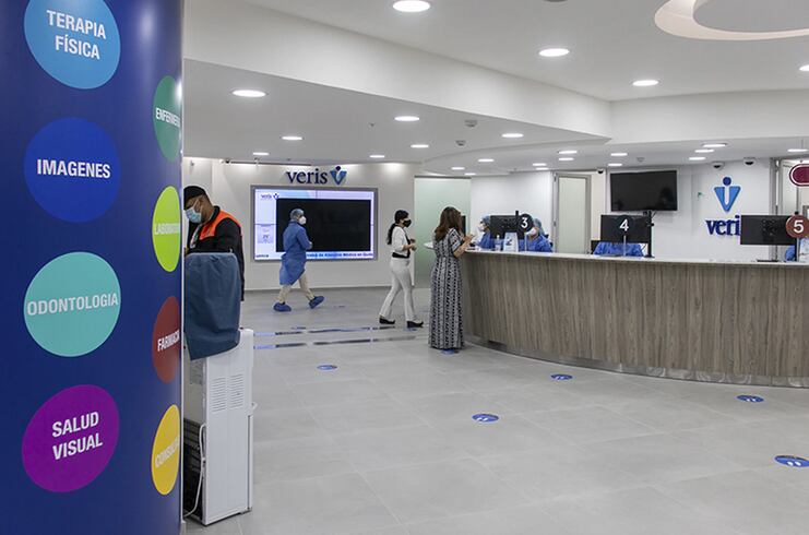 Actualmente ofrecen 7 especialidades en consultas presenciales como: medicina general, interna y familiar, traumatolgía, ginecología, pediatría y obstetricia. A través de videoconsultas cerca de 30 especialidades más, con la atención de especialistas de la inmensa red que tiene Veris.