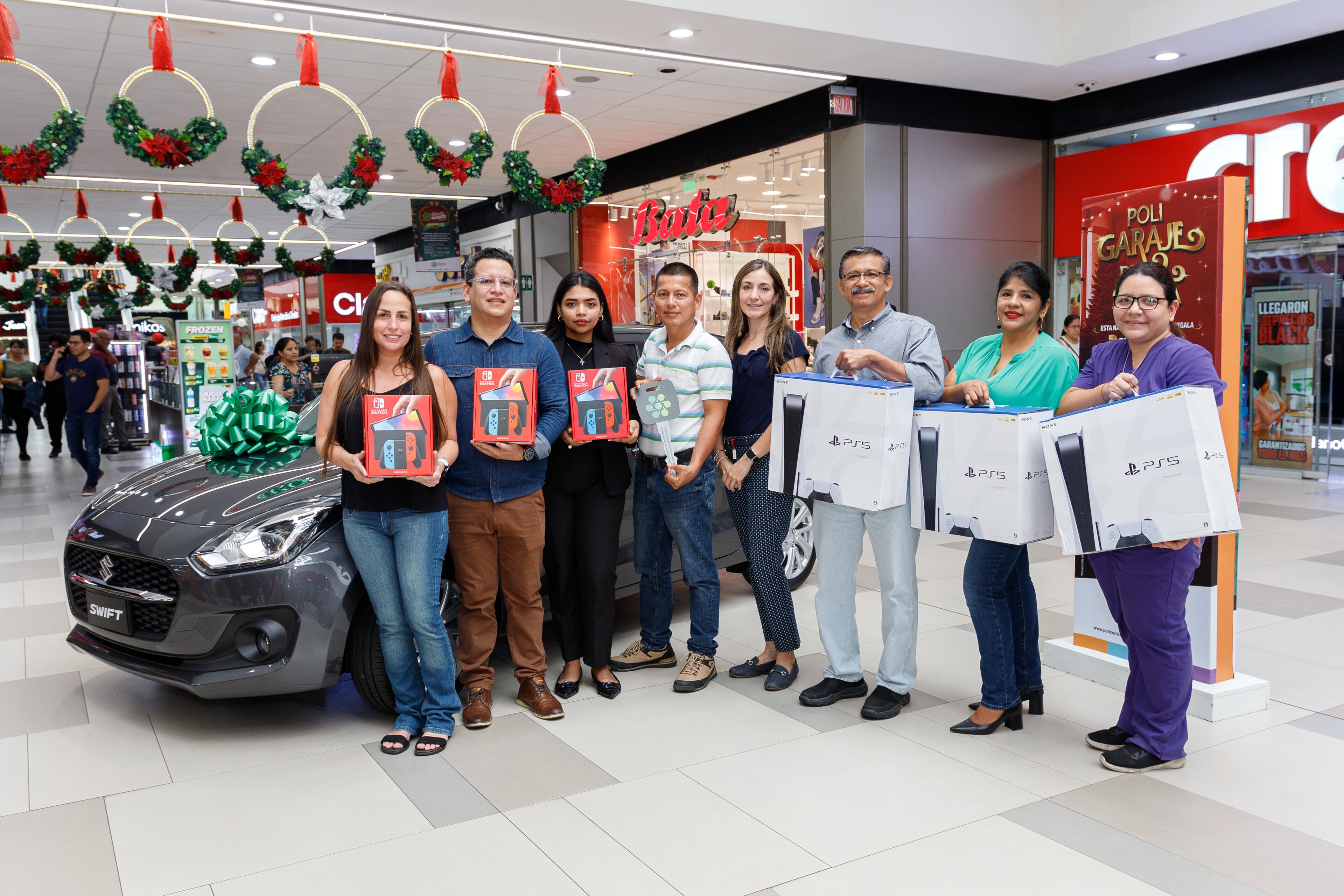 Policentro continúa con su promoción “El Poli Garaje de Santa” la cual premiará a 23 clientes con 3 autos Suzuki Swift 0Km, 10 Nintendos Switch Oled, 10 Play Station 5. Esta promoción estuvo vigente desde el viernes 10 de noviembre y finaliza el 7 de enero de 2024. El pasado 27 de noviembre se realizó el primero sorteo de: 1 auto Susuki Swift, 3 Nintendos Switch y 3 Play Station 5.