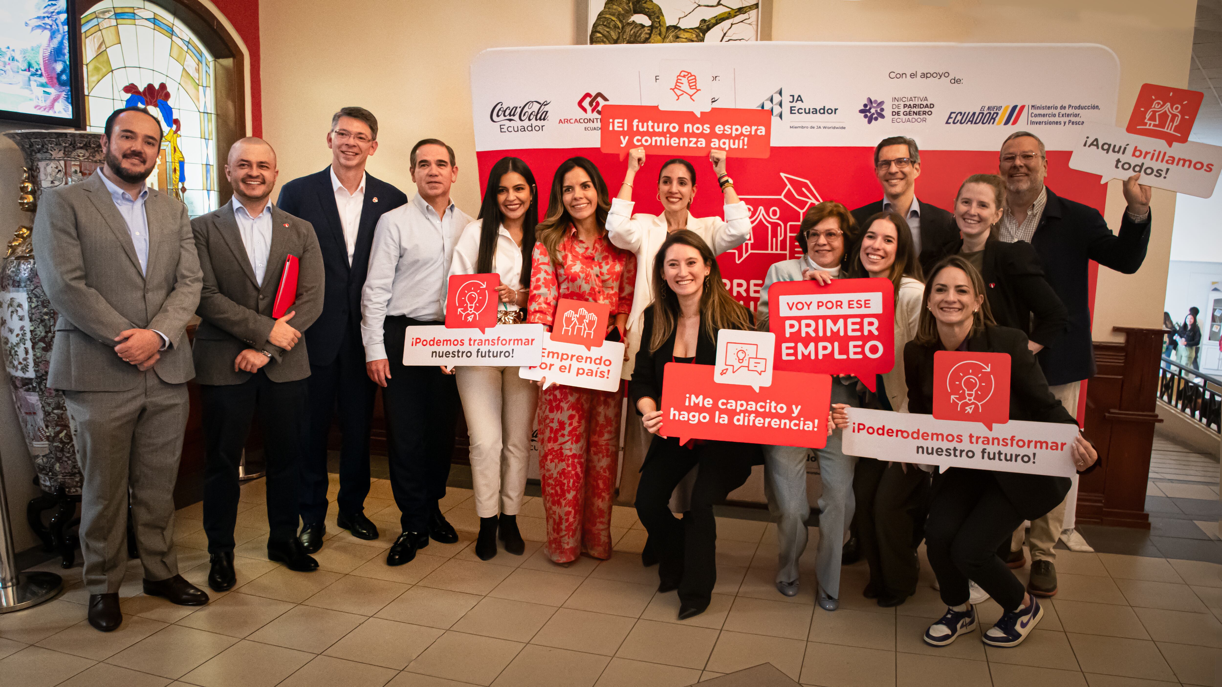 En la Universidad San Francisco de Quito, donde se reunieron autoridades y estudiantes, se presentó el programa “Emprendamos Junt@s, Capacitación para Tu Primer Empleo”, que busca fortalecer las capacidades y aptitudes de los jóvenes e impulsar la inclusión juvenil en el mercado laboral ecuatoriano. La iniciativa es el resultado de una alianza estratégica entre Arca Continental Ecuador, Coca-Cola Ecuador y el Gobierno Nacional.