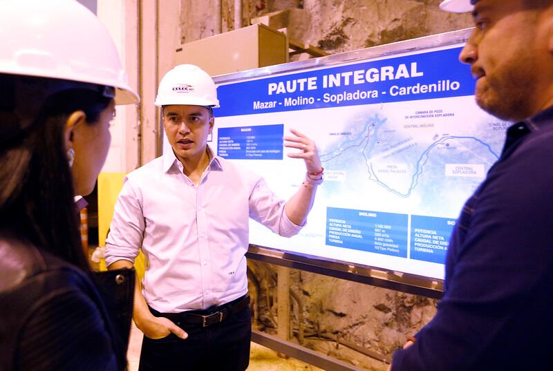 El 14 de enero, el mandatario visitó la central hidroeléctrica Paute - Molino, parte del Complejo Hidroeléctrico Paute Integral, que incluye también las centrales Mazar y Sopladora. Juntas, aportan una capacidad instalada de 1.757 MW, fundamental para el sistema eléctrico nacional.