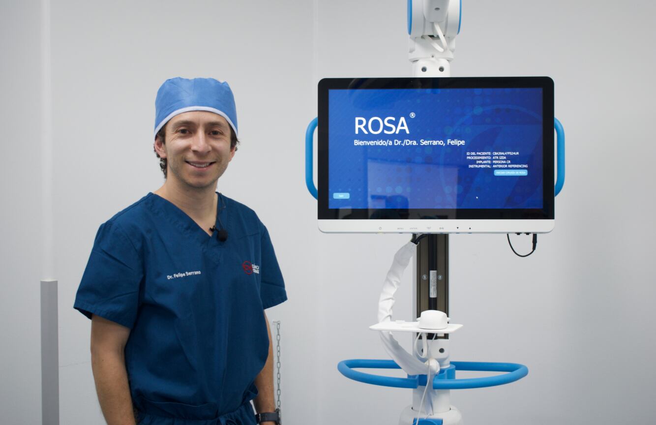 El Dr. Felipe Serrano, líder en cirugía ortopédica en Ecuador y con certificaciones internacionales en cirugía robótica, destaca que la clínica es pionera en este tipo de procedimientos en el país.