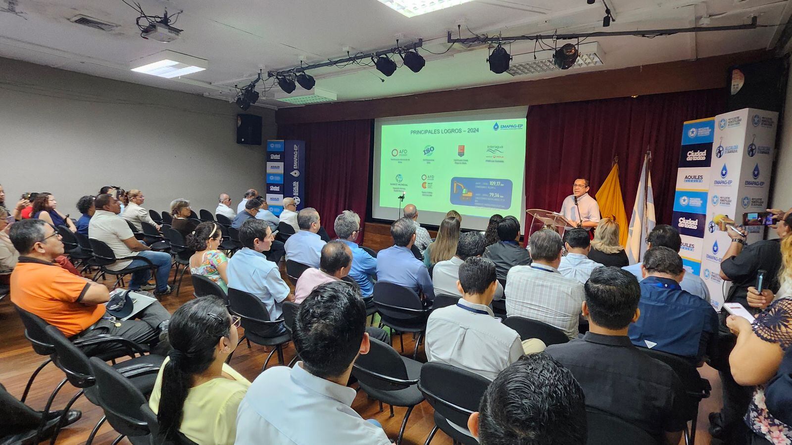 Ante un auditorio conformado enteramente por representantes de la comunidad, la Empresa Municipal de Agua Potable y Alcantarillado de Guayaquil, EMAPAG EP, realizó su Rendición de Cuentas 2024 en el auditorio del Museo Municipal.
