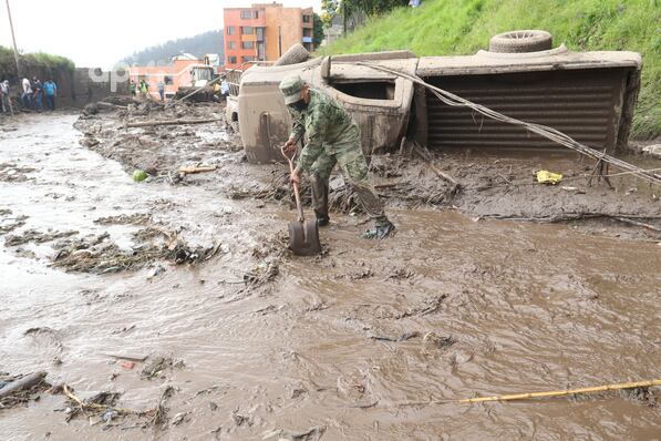El aluvión provocado por el temporal desbordó las infraestructuras de captación pues la capacidad de embalse era de 4.500 metros cúbicos, pero hubo un volumen de 20.000 metros cúbicos, y el agua y lodo bajaron desde el volcán Pichincha, que se erige al oeste de la ciudad, apuntó Guarderas.