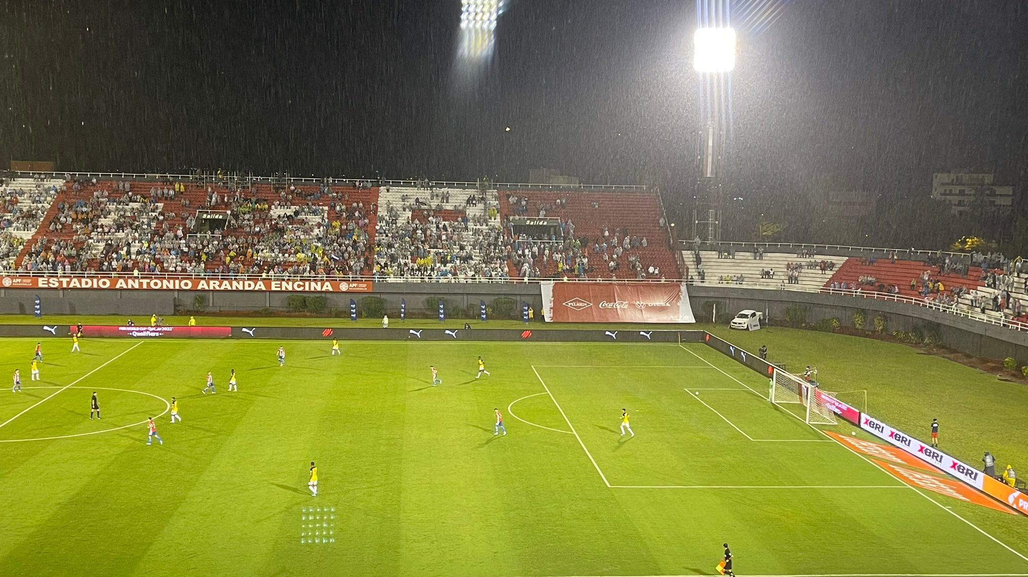 Debido a las condiciones climáticas, que a cada minuto dificulta la transición del balón, ha permitido que todo sea favorable para los guaraníes. Desde el primer tanto del partido, de la mano de Robert Morales, la Tri ha comenzado a acercarse al arco contrario pero no han podido marcar la igualdad.