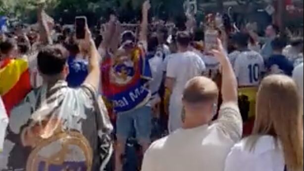 En el clip se pudo observar a varias personas vistiendo camisetas y banderas del Real Madrid mientras iban grabando con sus celulares la dedicatoria al delantero del club francés -con lenguaje ofensivo- que los lectores podrán escuchar en el siguiente video a continuación: