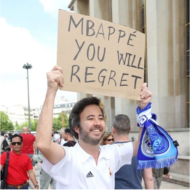 Previo al encuentro entre el Real Madrid y el Liverpool FC por la final de la UEFA Champions League, varios hinchas del equipo español se tomaron las calles de París para dedicar un mensaje en contra de Kylian Mbappé, por no aceptar su traspaso hacia el Madrid.