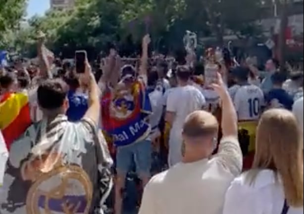 En el clip se pudo observar a varias personas vistiendo camisetas y banderas del Real Madrid mientras iban grabando con sus celulares la dedicatoria al delantero del club francés -con lenguaje ofensivo- que los lectores podrán escuchar en el siguiente video a continuación: