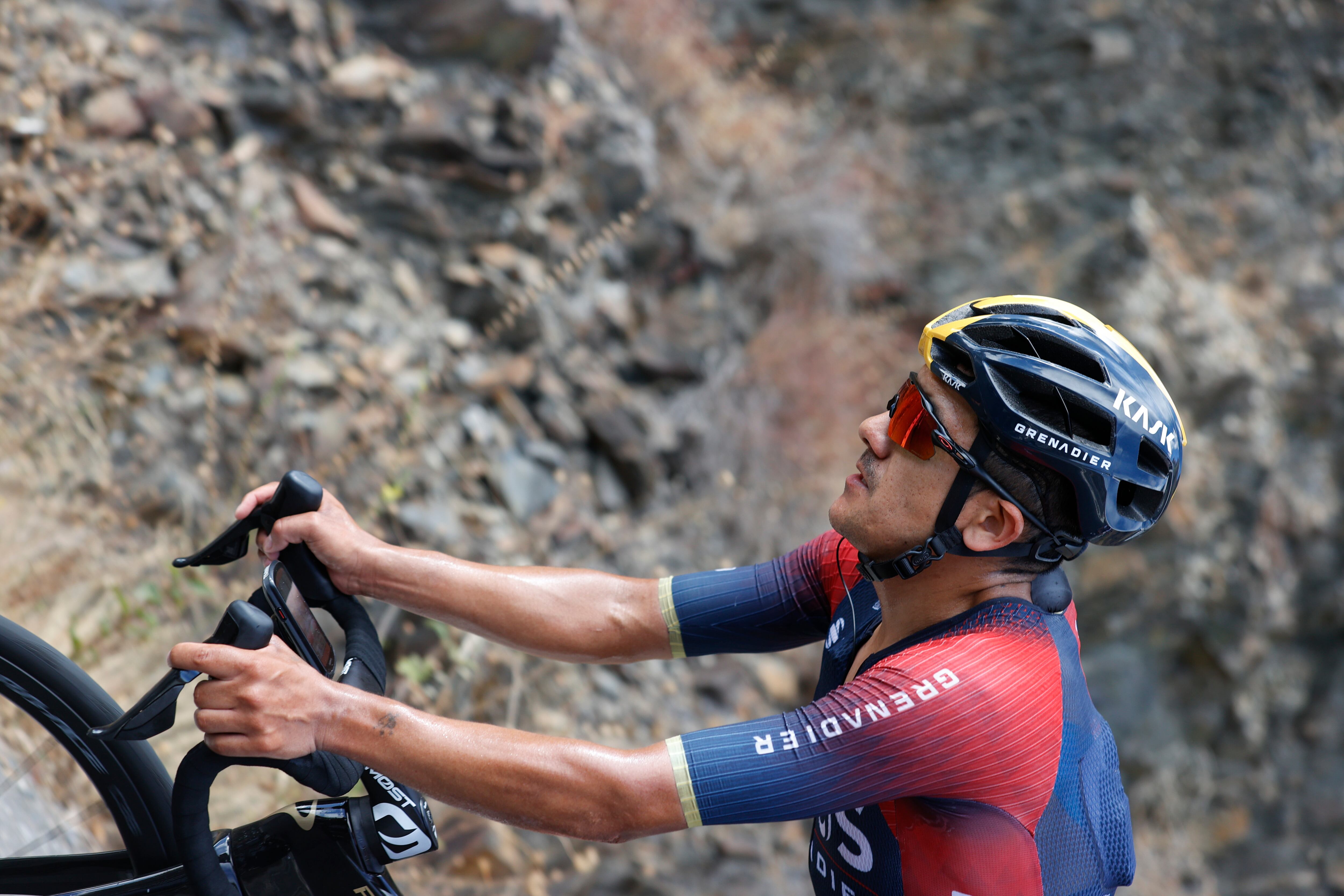 El ciclista ecuatoriano Richard Carapaz (Ineos) compitió en la 18 etapa de la Vuelta a España 2022 en Trujillo (Cáceres) este jueves.