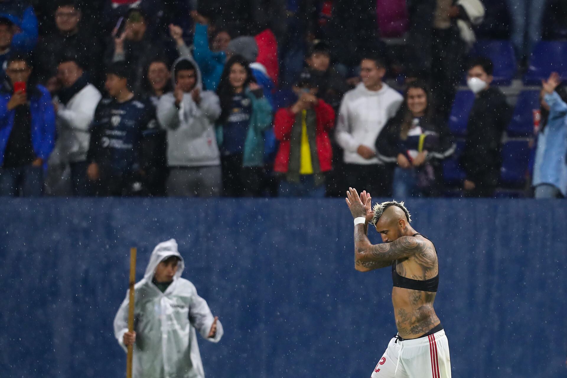 Vidal no fue bien recibido en el Estadio Banco de Guayaquil. En las gradas se escucharon cánticos dedicados al chileno debido al conflicto que hubo entre Ecuador y Chile por el caso Byron Castillo donde quisieron dejarle a la Tricolor fuera del Mundial. Por esta razón, sonó fuerte una melodía coreada por hinchas de IDV: “Poropopo Poropopo el que no salta es chileno m...”. El mismo grito sonó en el Mundial de Qatar 2022 y la Tri fue sancionada, ¿pasará lo mismo con IDV?
