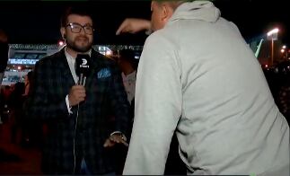 Sebastián Machado y Teo Pozo estuvieron en el acceso al estadio ubicado en la avenida John F. Kennedy. En ese momento, mientras conversaban con el conductor Diego Arcos, varios fanáticos expresaron su malestar, incluso manipularon la cámara y bloquearon la intervención de los periodistas.