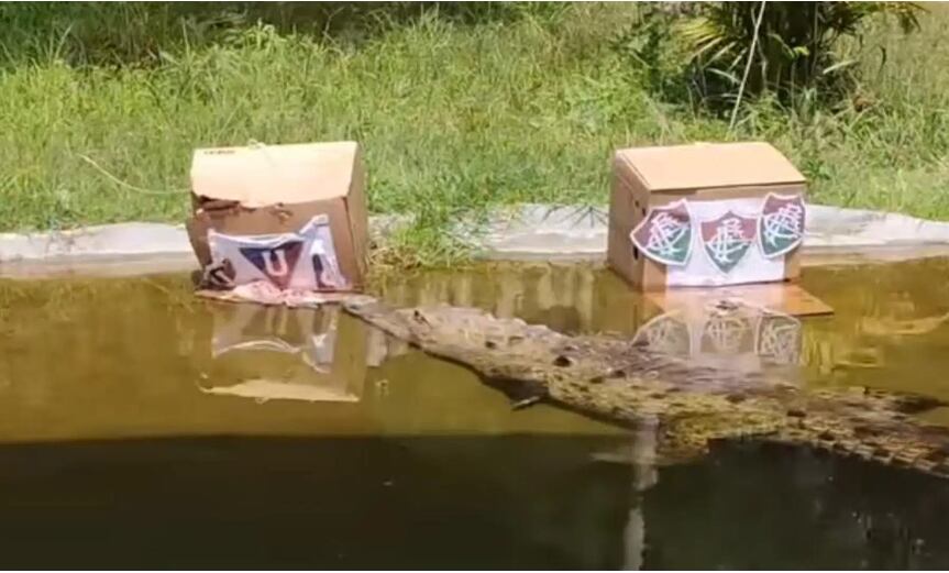Pero, luego de varios minutos de espera, el cocodrilo se abalanzó sobre la caja que tenía el escudo de Liga y se comió lo que había en su interior, causando la emoción de los presentes.