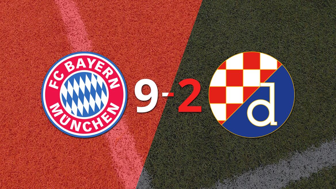 D. Zagreb no pudo evitar la derrota en el estadio Allianz Arena y fue superado ampliamente por 9-2 B. Múnich, en el duelo correspondiente a la fecha 1 del torneo UEFA Champions League - 2024-2025. Los goles del partido para el local los anotaron Harry Kane (18' 1T, de penal, 11' 2T, 27' 2T, de penal y 32' 2T, de penal), Raphaël Guerreiro (32' 1T), Michael Olise (37' 1T y 15' 2T), Leroy Sane (39' 2T) y Leon Goretzka (46' 2T). Mientras que los goles de visitante los hicieron Bruno Petkovic (3' 2T) y Takuya Ogiwara (4' 2T).