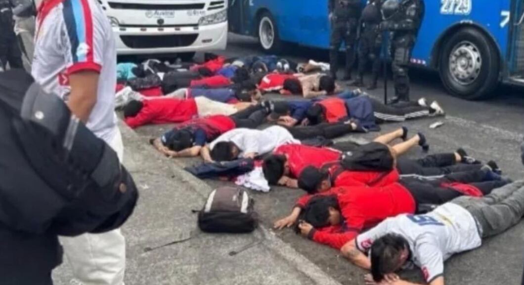Pese a este panorama, personal de la Policía Nacional realizaba tareas de control y seguridad en las inmediaciones del escenario del Rodrigo Paz Delgado. Precisamente, un conjunto de hinchas que vestían la camiseta de los ‘Puros Criollos’ llevaban consigo armas.