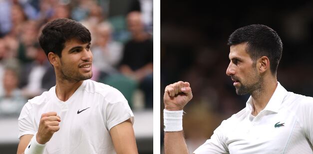 Las tres victorias del murciano Carlos Alcaraz frente al serbio, Novak Djokovic, en sus duelos particulares llegaron en hierba -las finales de Wimbledon en 2023 y 2024- y en tierra batida -la semifinal que jugaron en el Masters 1.000 de Madrid en 2022-.