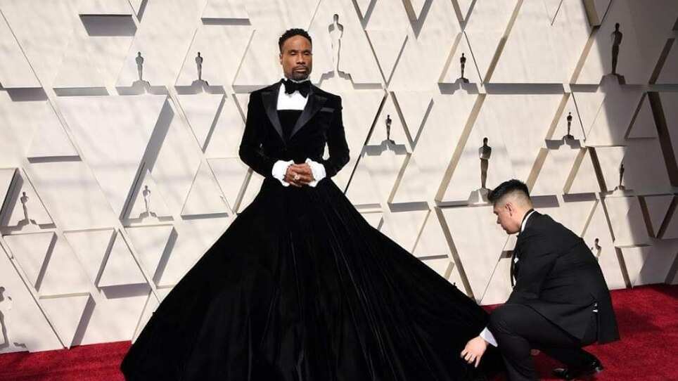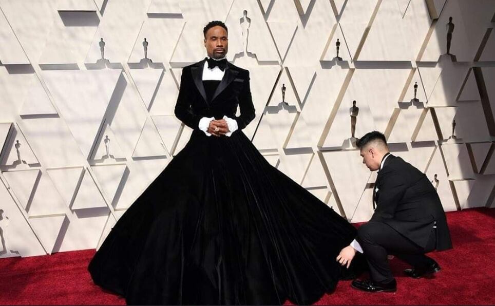 El clásico esmoquin quedó a un lado. El actor norteamericano Billy Porter de 49 años que actúa en la popular serie LGBTI ‘Pose’ lució un atuendo completamente controversial que rompió los esquemas de etiqueta del evento, él apareció con una un vestido largo negro, cuya parte superior tenía una camisa blanca y un corbatín.