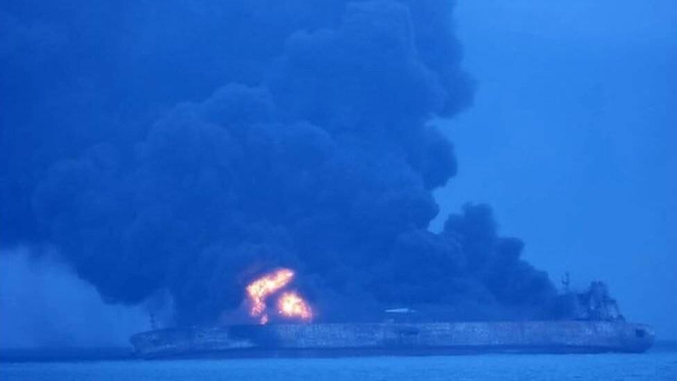 El barco Sanchi, una embarcación registrada en Panamá, llevaba 136.000 toneladas de petróleo iraní y se prendió en llamas después del choque.