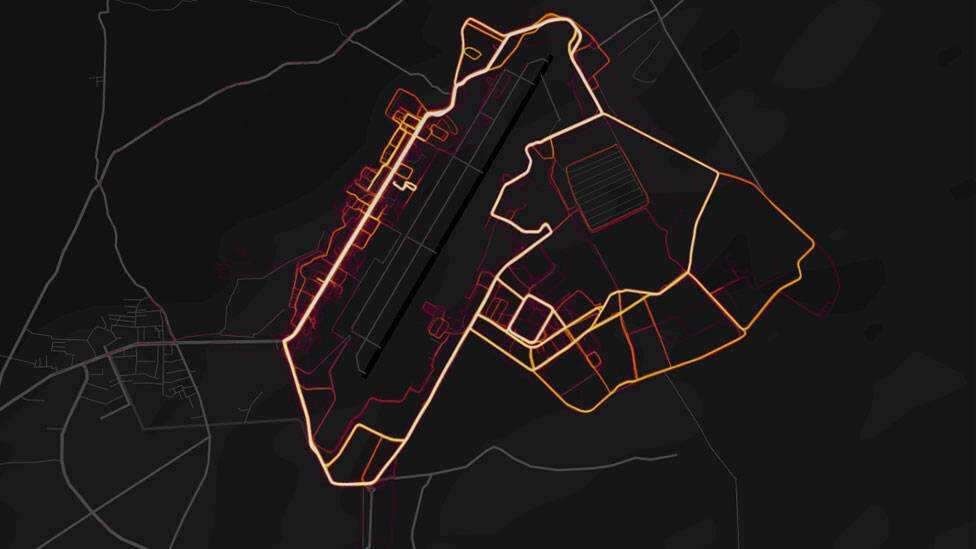 Y todos esos recorridos pueden observarse en un "mapa de puntos calientes" (heatmap) que publicó la empresa en su sitio web y en el que reveló "más de 1.000 millones de actividades" de sus usuarios.