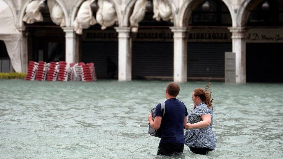 Y en Venecia, famosa por sus canales, funcionarios dicen que la ciudad está sumergida en un 75%.
