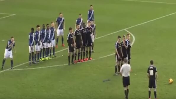 Esto ocurrió en un duelo del torneo de Segunda División inglesa que disputaron el Birmingham City (azul) ante el Brentford (negro). Al ejecutar un tiro libre, el cuadro de camiseta negra agregó dos barreras más a la que ya tenía ubicada el elenco de azul. pese a lo ingenioso de la jugada, la acción no terminó en gol.