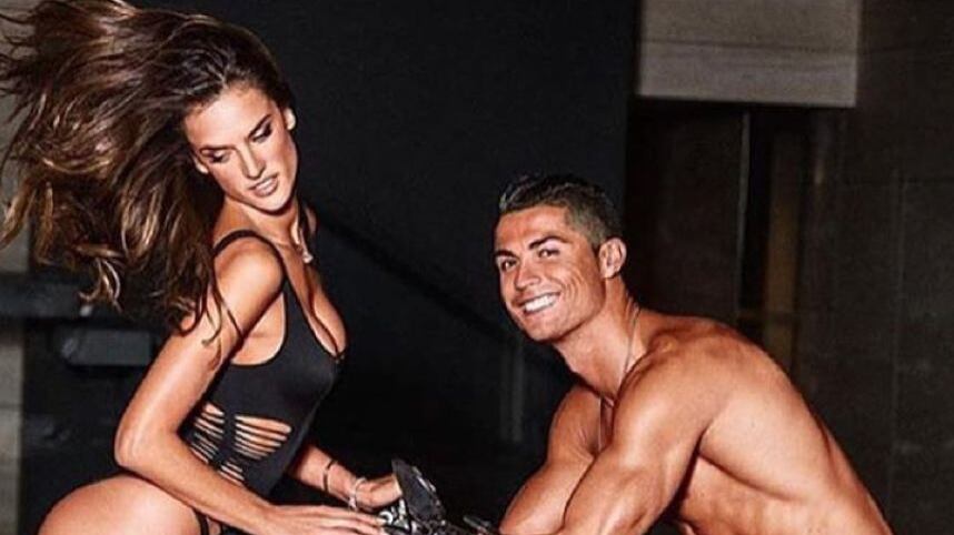 En el clip que posteó la propia modelo brasileña, «CR7» y el ángel de Victoria’s Secret juegan a dominar el balón con la cabeza.