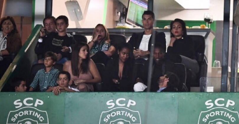 Ronaldo, que no puede jugar mañana, domingo, contra la Real Sociedad en la Liga española porque está sancionado, vio el partido desde la grada del estadio acompañado de su novia, la española Georgina Rodríguez.