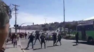 Radio Sucre captó el momento en que los seguidores se enfrentaron en la Av. Diego de Vásquez, frente a la estación del MetroBus en el sector de la Ofelia, norte de Quito.