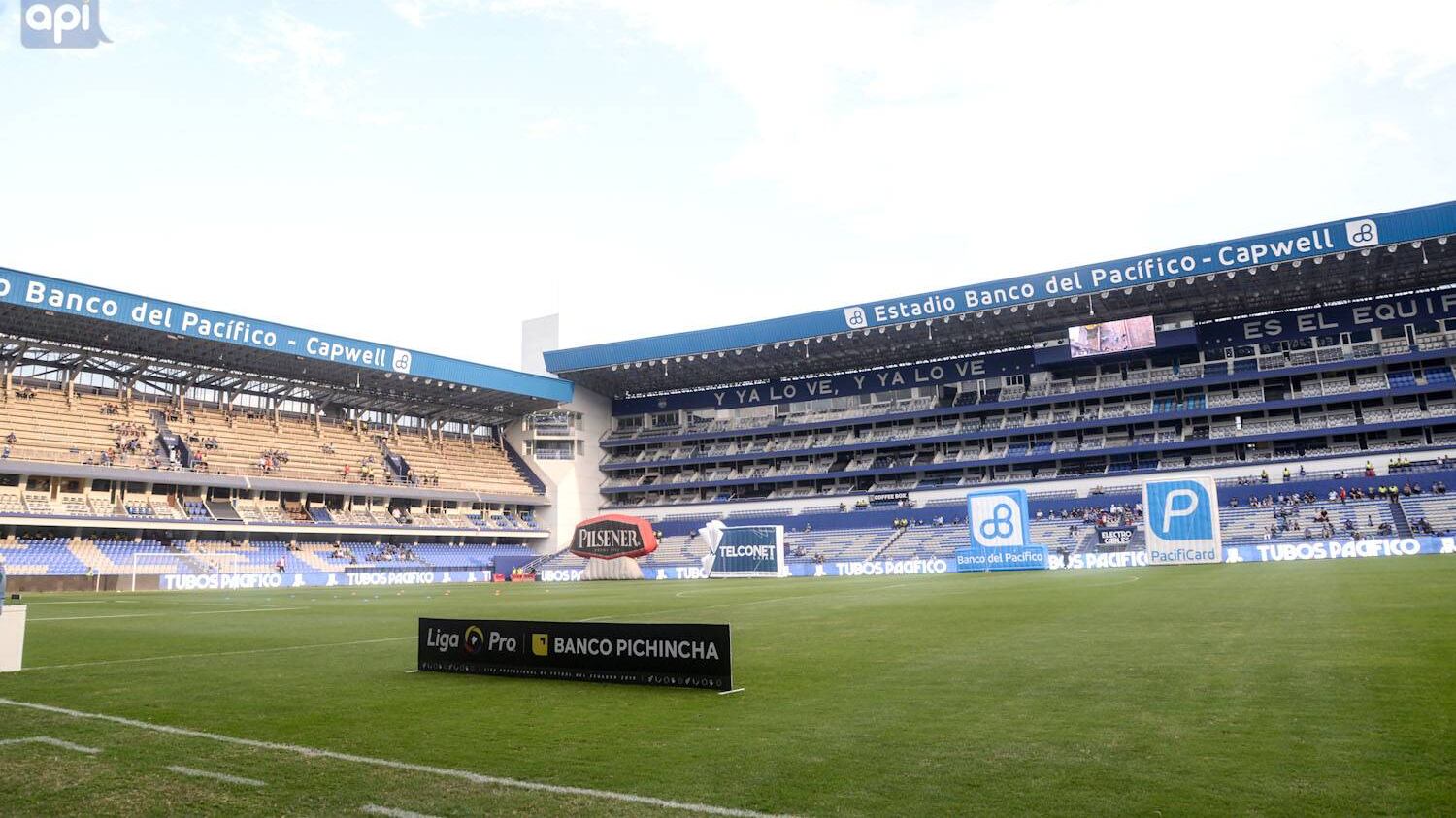 También se les ve a los aficionados corriendo de un lado a otro y algunos portando la camiseta del club guayaquileño. Luego aparece un elemento de la Policía Nacional para controlar la situación.