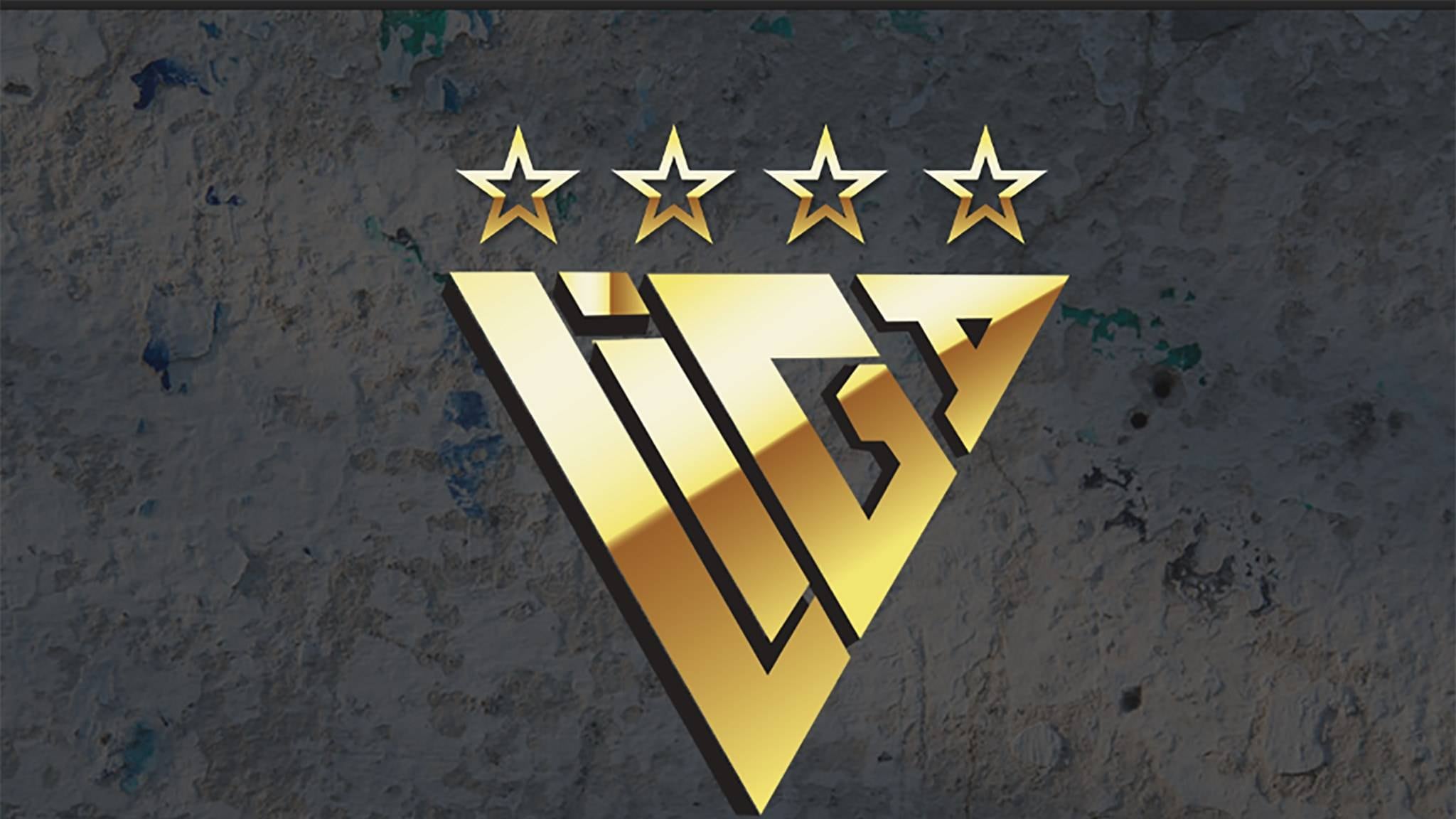 En el segundo diseño se mantiene los colores (azul y rojo) y de igual forma se lee LIGA dentro del triángulo invertido. Y el tercero, el escudo es dorado, y las letras tienen el color azul y rojo.