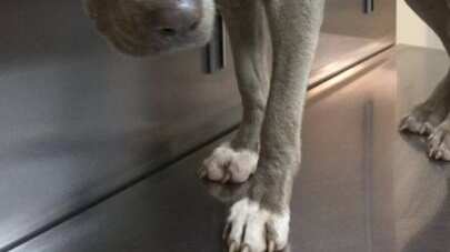 Ella es una perrita que fue encontrada en una carretera. Quien la encontró, la recogió y la llevó al veterinario, quien descubrió el mal estado en el que se encontraba.