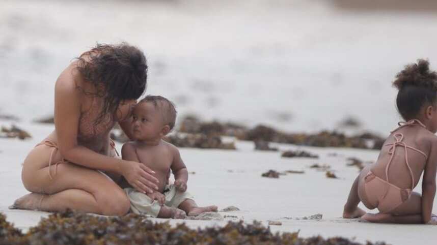 La esposa de Kanye West pasó el viernes en la playa de Punta Mita en Nayarit, México jugando con sus hijos mientras ella lucía el cuerpo que se le ha quedado tras adelgazar más de 30 kilos.
