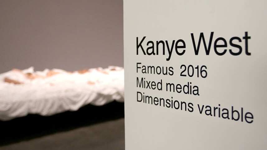 Kanye West inauguró una exhibición del videoclip de la canción «Famous», uno de sus trabajos más polémicos recientes, tanto por la letra de la canción como por las imágenes.