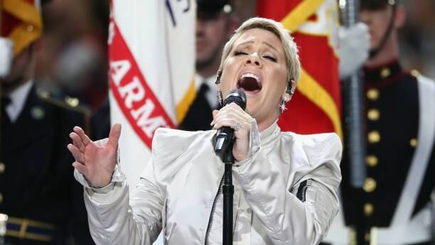 La cantante estadounidense pop Pink superó los problemas de salud que arrastró en los últimos días afectada con los síntomas de la gripe y entonó con brillantez el Himno Nacional previo al inicio de la 52 edición del Super Bowl que se disputa en el U.S. Bank Stadium de Minneapolis.