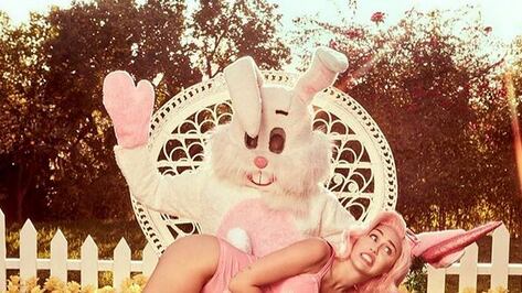 Miley Cyrus coquetea con el conejo de Pascua