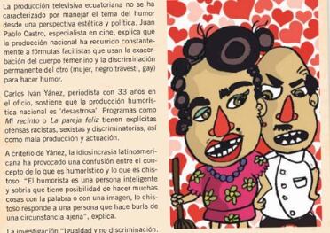El texto se titula: “Comedia ecuatoriana: una ventana a la discriminación, sexismo y la intolerancia”, donde se habla del personaje y se caricaturiza con una gráfica de la «Pareja Feliz», sketch donde actúa «La Mofle y El Panzón», este último interpretado por David Reinoso.