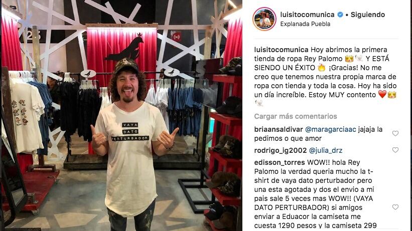 Luis Villar, más conocido como Luisito Comunica, inauguró su tienda de ropa ‘El Rey Palomo’ en una reconocida plaza comercial en México.