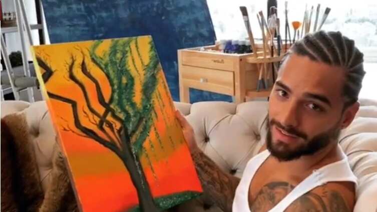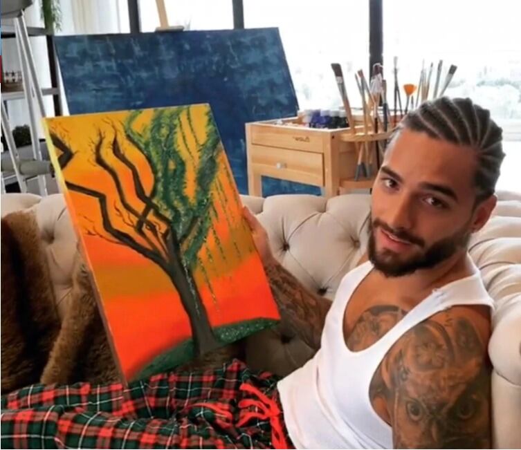 Maluma nuevamente sorprendió en sus redes, ya que publicó una foto en su cuenta de Instagram donde aparece con un nuevo look y mostró su nueva faceta a la que actualmente se está dedicando: la pintura. Su cuenta que posee más de 38 millones de seguidores, el cantante urbano compartió un video en el que mostró su debut en la pintura. En el clip se ve a Maluma sentado en un sofá relajadamente, y encima de sus piernas un cuadro de pintura. En el adjunto del video publicó: «No sé si ustedes sabían pero también soy fanático de todo tipo de arte y hoy hice mi primer cuadro y lo voy a firmar y solamente quería mostrarles el amor que siento por esto», comentó Maluma mientras procede a firmar su obra.