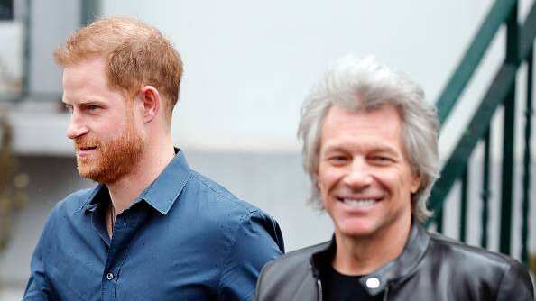 Él y Harry, que esta semana pidieron que lo llamaran solo por su nombre, fueron fotografiados en la cabina de grabación usando auriculares, con Bon Jovi tocando la guitarra.