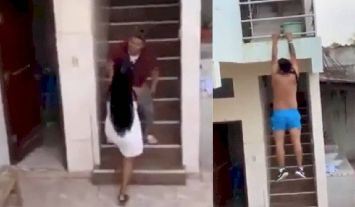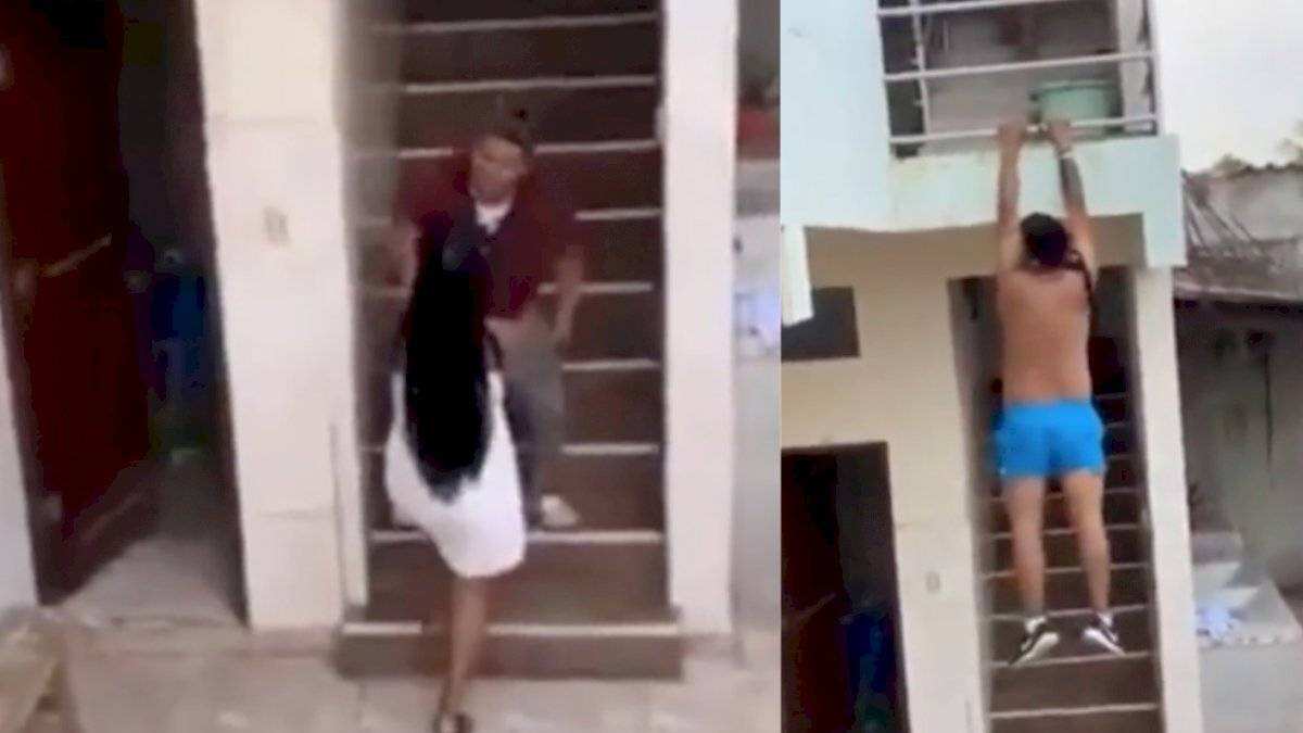 En redes sociales se viralizó la extraña escena que vivió una pareja. Los internautas lograron captar cómo un hombre descubrió a su mujer infiel con su amante. Los celos invadieron el lugar por el engañado, mientras que los vecinos grabaron todo.