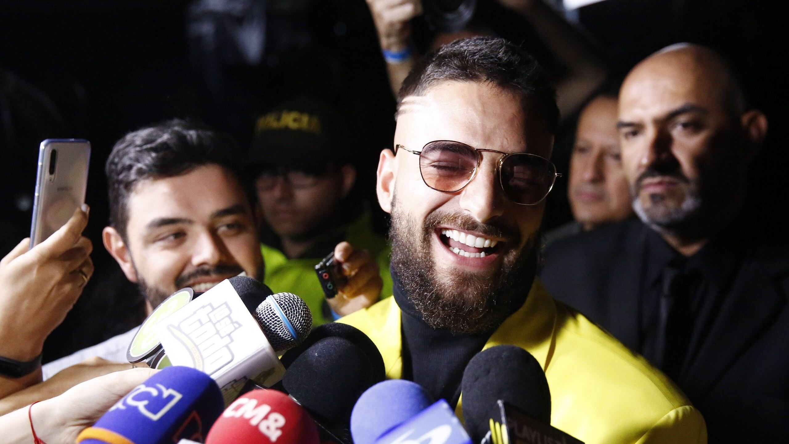 En imágenes ofrecidas por este medio se veía a Maluma a bordo de un automóvil todoterreno con techo corredizo saludando de pie a sus simpatizantes, que le vitoreaban y rodeaban con sus teléfonos móviles en la mano para tomarle fotos.