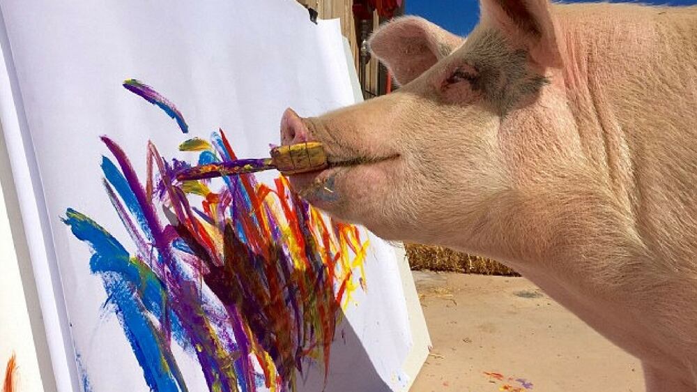«Pigcasso», se llama la cerdita que fue adoptada en Sudáfrica, en la ciudad del Cabo, hace unos años por una mujer, y que ahora es reconocida por sus pinturas en lienzo.