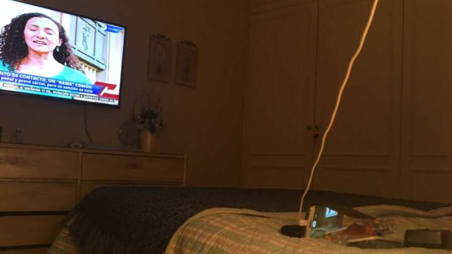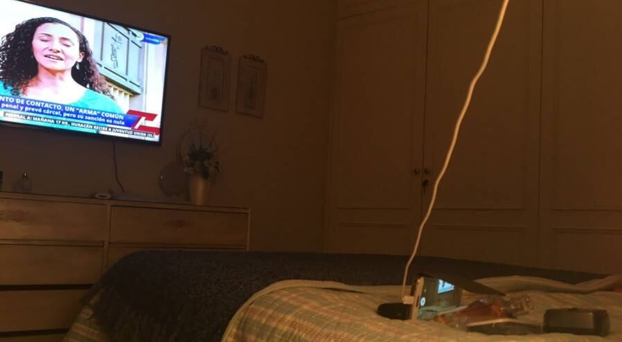 En ellas se puede ver como su madre dejó su teléfono celular apuntando a la televisión para grabar la telenovela. María Inés armó con un perfume y los controles remotos una “base” para que el smartphone no se cayera y además se puede ver como lo dejó enchufado para que no se quedara sin batería.