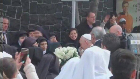 Un grupo de monjas hizo que el pontífice rompiera el protocolo, y es que mientras se dirigía rumbo a Campo Marte, de donde partiría hacia Ecatepec, pidió detuvieran el papamóvil para dirigirse a las religiosas.