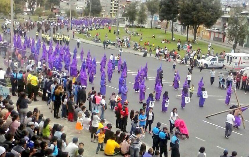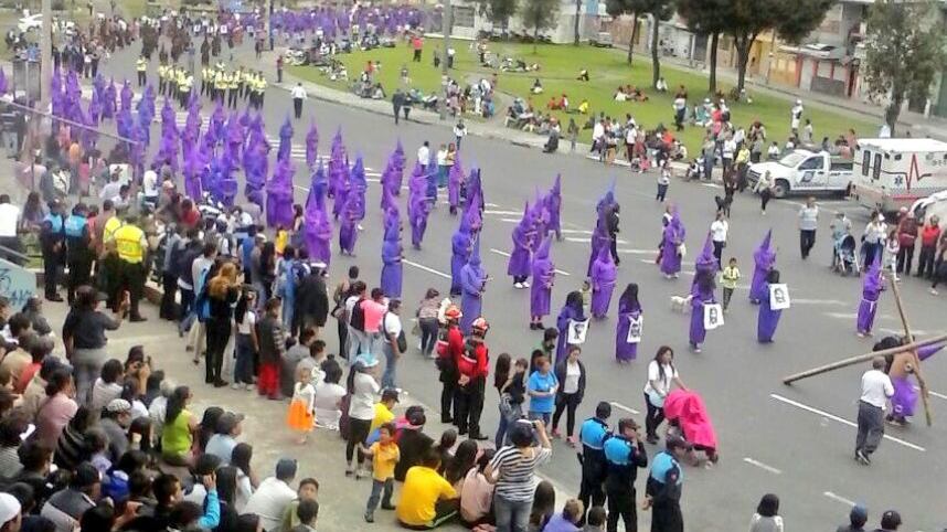 Los quiteños iniciaron la procesión del viacrucis que partió desde la iglesia San Francisco, para recordar los pasos que Jesús sufrió con latigazos y la corona de espinas sobre su cabeza.