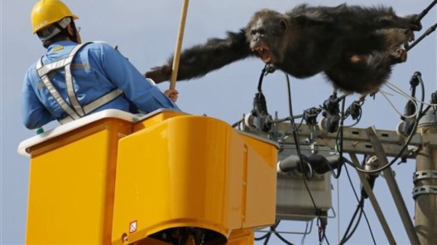 Un chimpancé escapó de un zoológico ubicado al norte de Japón, y para evitar que lo capturaran trepó un poste de luz. Sin embargo su libertad no duró mucho.
