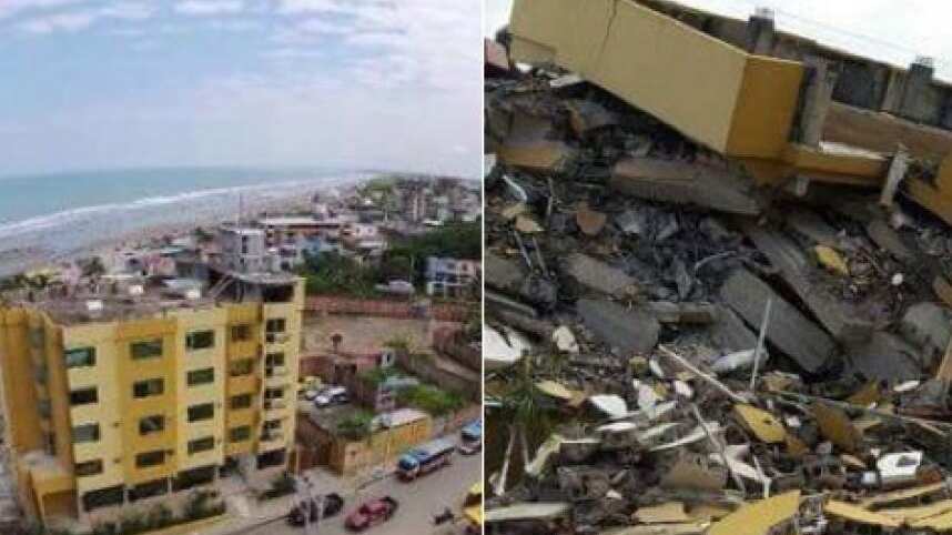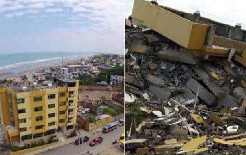 Asimismo hasta el sábado a las 18H58 el hotel Royal era un hotel de cinco pisos con piscina, pero desde que la tierra tembló en ese minuto quedó reducido a una cima de escombros, como casi todo en ese pequeño balneario turístico en las costas del Pacífico, convertido en el epicentro de una tragedia que por ahora deja 413 muertos y más de 2.000 heridos.