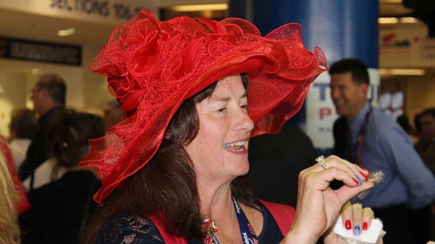 «Este es mi billete de un millón de dólares, que dice que no tengo miedo de ser exitoso, al igual que Trump, que está orgulloso de haber podido hacer dinero. El elefante que representa el Partido Republicano y chapas de Trump y otros candidatos», dijo a Metro una de las delegadas por Hawaii, Cindy Sue Clark, quien describió emocionada el sombrero que ella misma creó para la convención.