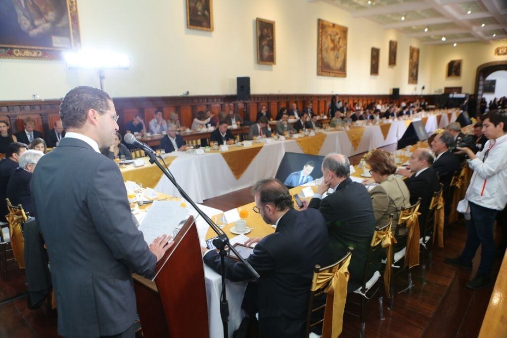 «Tenemos también la necesidad de formular acciones de forma óptima con los diferentes niveles de gobierno; fortalecer los mecanismos de cooperación y de integración con los gobiernos nacionales para garantizar los procesos de descentralización que permitan a su vez una correcta aplicación de políticas públicas en beneficio de las personas en nuestras ciudades’ indicó el Alcalde Mauricio Rodas